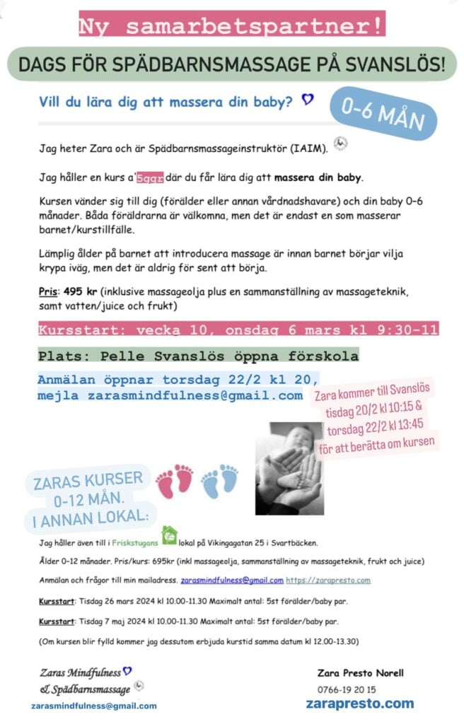 Vi är så glada att meddela att legitimerade spädbarnsmassageinstruktören Zara Presto (zarapresto.com) håller kurser i spädbarnsmassage hos oss denna termin! 👶🏼
