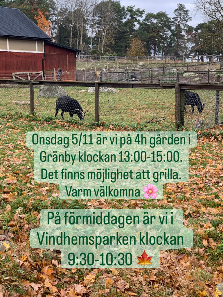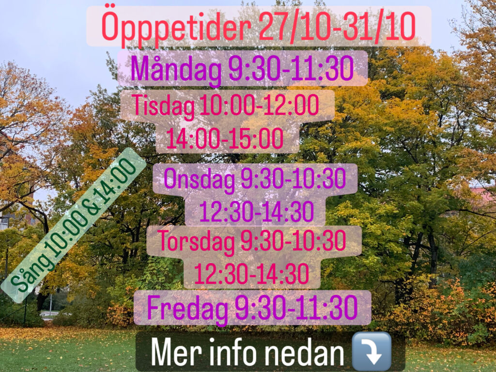 Öppettider V.45 Måndag Vi är på plats i Vindhemsparken och det finns varm dryck och det finns möjlighet att gå
